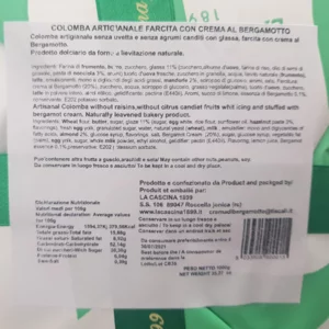 Questa colomba pasquale racchiude in sé tutte le caratteristiche tipiche di un dolce artigianale della tradizione, arricchito dai gusti unici e genuini della Calabria.