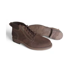 Polacchine uomo con tomaia in pelle scamosciata (suede) di colore t.moro grassato vintage con lacci e cerniera. La linea è semplice e moderna, un particolare equilibrio fra design moderno e praticità e comfort. La lavorazione con soletto anatomico morbido e flessibile e fondo gomma antiscivolo ne esalta l artigianalità e robustezza e la rifinitura vintage le rende belle e alla moda e comode come pantofole e pratiche da indossare già allacciate con la cerniera esterna