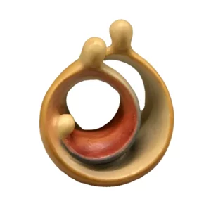 Sacra Famiglia moderna con volti stilizzati in legno d'acero naturale, 7cm