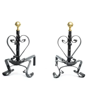 Set da camino realizzato interamente in ferro battuto forgiato con pomi in ottone.