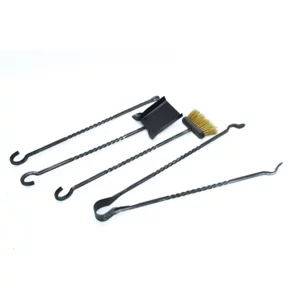 Il completo include 4 accessori: paletta, molla, attizzatoio e una scopina intercambiabile in ottone, materiale scelto perché non si danneggia con il calore.