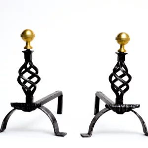 Coppia di alari con lo stesso decoro (spessore ferro 16mm), rifiniti con pomo abbinato alla struttura.
