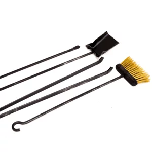 Composizione: 4 accessori: paletta, molla monopezzo, attizzatoio forgiato, scopina intercambiabile in ottone