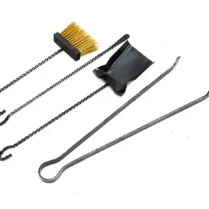 Composizione: 4 accessori: paletta, molla monopezzo, attizzatoio forgiato, scopina intercambiabile in ottone