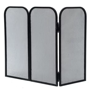 DESCRIZIONEParascintille artigianale a 3 ante snodate in ferro battuto, ideale per camini grandi, ad angolo o aperti su più lati.