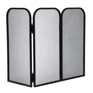 Parascintille in ferro battuto snodato nero, 3 ante 72x50cm