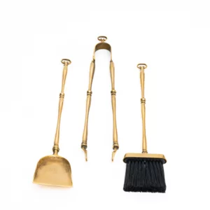 Elegante servizio da camino realizzato in puro ottone, interamente lavorato a mano in Italia dai maestri artigiani.
