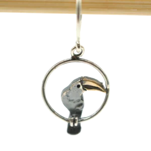 Orecchini realizzati in argento con la tecnica del traforo. I tucani sono incisi a mano, un lavoro di frese e bulini. I cerchi sono realizzati in argento. E' un accessorio lavorato a mano, unico e originale.