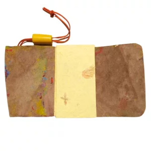 Le caratteristiche principali di questa agenda sono quelle di recuperare materiali in disuso come pelle di scarto di lavorazioni calzaturiere poi legate e abbellite in maniera originale grazie all’uso di pietre o elementi di vecchie collane.