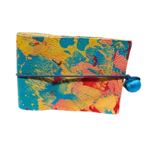 La pelle che lo riveste è lavorata con l’antichissima tecnica Ebru della marmorizzazione, cosicché ogni pezzo ha un carattere unico e irripetibile, con colori e motivi astratti e fluidi, mai identici l’uno all’altro.