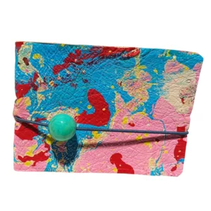 La pelle che lo riveste è lavorata con l’antichissima tecnica Ebru della marmorizzazione, cosicché ogni pezzo ha un carattere unico e irripetibile, con colori e motivi astratti e fluidi, mai identici l’uno all’altro.