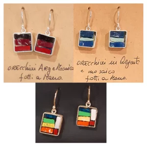 Orecchini in argento 925 con mosaico veneziano fatto a mano, 1x1cm