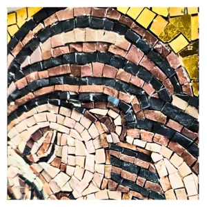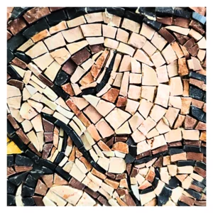 Realizzato a mano nel laboratorio artistico La Musa, situato a Castel Gandolfo, ogni dettaglio è frutto di una meticolosa composizione di tessere di marmo policromo e oro, tagliate e posate con la tecnica diretta tradizionale. Il risultato è un’immagine vibrante, ricca di sfumature, perfetta per ambienti domestici o spazi di preghiera.
