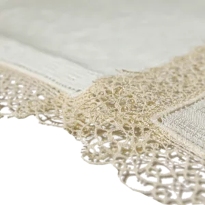 Il set è composto da un Centro (33x43cm compreso pizzo) e 6 sottocoppe (15x15cm compreso pizzo).