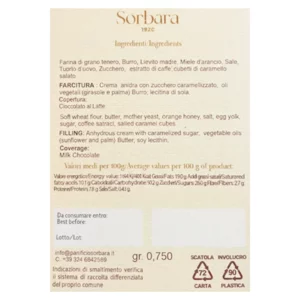 FARCITURA: crema anidra con zucchero caramellizzato. oli vegetali (girasole e palma) burro. lecitina di soia.