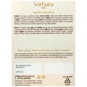 All’interno trovi gocce di cioccolato bianco e frutti di bosco canditi, che donano una piacevole nota dolce e fruttata.
