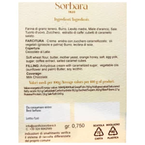 Ingredienti: Farina di grano tenero, burro, lievito madre, miele d’arancio, sale, tuorlo d’uovo, zucchero, estratto di caffè, cubetti di caramello salato.
