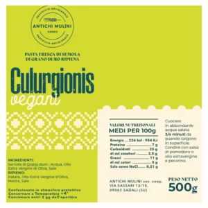 Formato e confezione: 2 confezioni da 500g (circa 20 Culurgionis ciascuna)