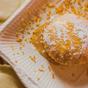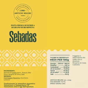 Le sebadas sarde del Pastificio Antichi Mulini esprimono la tradizione dolce dell’isola con semplicità e cura artigiana. La pasta, realizzata con semola di grano duro sardo, racchiude un cuore filante di formaggio pecorino e una fresca nota di scorza di limone, resa ancora più golosa dallo zucchero.