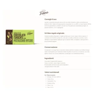 A base di: cioccolato fondente belga e pistacchi interi selezionati