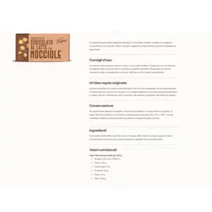 Per apprezzarne appieno la qualità, conserva la tavoletta in un luogo fresco e asciutto, al riparo da fonti di calore e luce diretta. La temperatura ottimale è tra i 14° e i 18°C, così da mantenere intatte la cremosità del cioccolato e la fragranza delle nocciole.