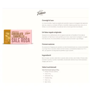 Un morso tira l’altro: il gusto avvolgente del caramello si sposa con la leggera nota sapida del sale rosa, creando un contrasto raffinato e irresistibile. Ideale da gustare dopo cena, con un whisky o un rum invecchiato, o da usare per dare un tocco gourmet ai tuoi dessert.