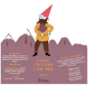 Un liquore artigianale unico, prodotto con zafferano coltivato in alta montagna direttamente dall'azienda agricola e arricchito con olio essenziale di pino mugo.