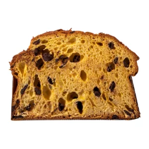L’impasto, lavorato a mano e lasciato lievitare lentamente per oltre 48 ore, mantiene una struttura soffice e ariosa, esaltata dalla presenza di gocce di cioccolato impastate a freddo: così non si sciolgono, ma si trasformano in piccoli scrigni di gusto all’interno della pasta dorata.