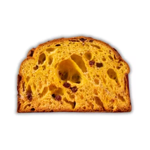 Il panettone mantiene la caratteristica struttura cilindrica e la crosta dorata ben definita. l’interno mostra un impasto equilibrato, con pezzi di lampone e filamenti di cioccolato bianco.