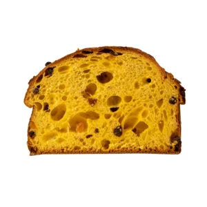 Il suo impasto, soffice e dorato, custodisce uvetta succosa e scorze d’arancia candite che regalano un profumo avvolgente e un gusto equilibrato tra dolcezza e freschezza agrumata.