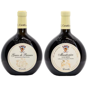 Scopri la raffinatezza del Greco di Bianco DOP e del Mantonico IGP Loc dell'Azienda Vinicola Ceratti Pasquale, racchiusi in un'elegante valigetta regalo.