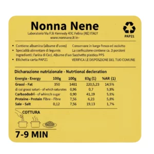 Cuoci in abbondante acqua salata per circa 8-10 minuti. Perfetta con sughi leggeri di verdure, pesto o olio extravergine d’oliva.