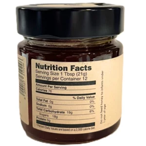 % Valore Giornaliero: Total Fat 0g 0%. Sodio 0g 0%. Total Carboidrati 19g 6%. Zuccheri 18g. Proteine 0g.